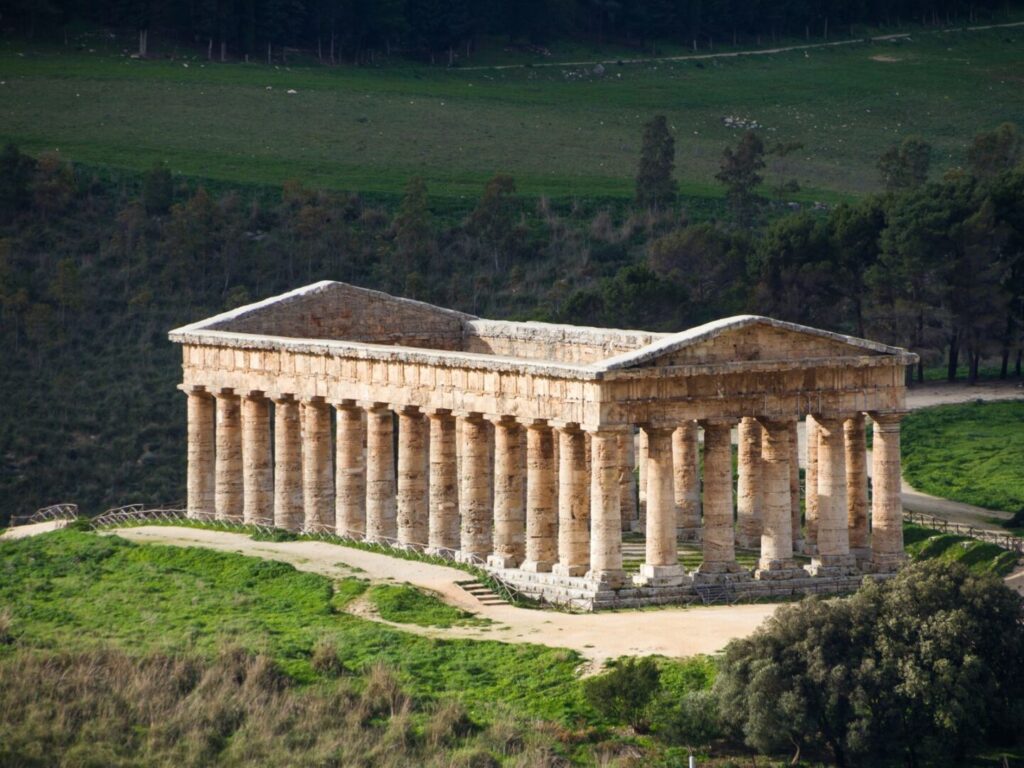 Along the northern coast, the seaside town of Cefalù offers a charming blend of medieval streets and Mediterranean views, before the journey continues through the landscapes of western Sicily — from the solitary Greek temple of Segesta to the hilltop village of Erice, overlooking the sea. Further south, the majestic temples of Agrigento rise above the countryside, creating one of the most extraordinary archaeological settings in the Mediterranean.